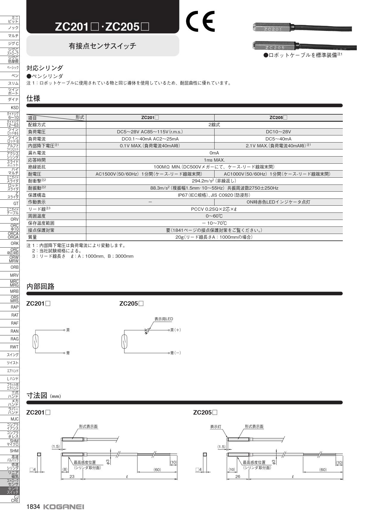 センサスイッチ,ZC201,ZC205,有接点,オートスイッチ,オートスイッチ