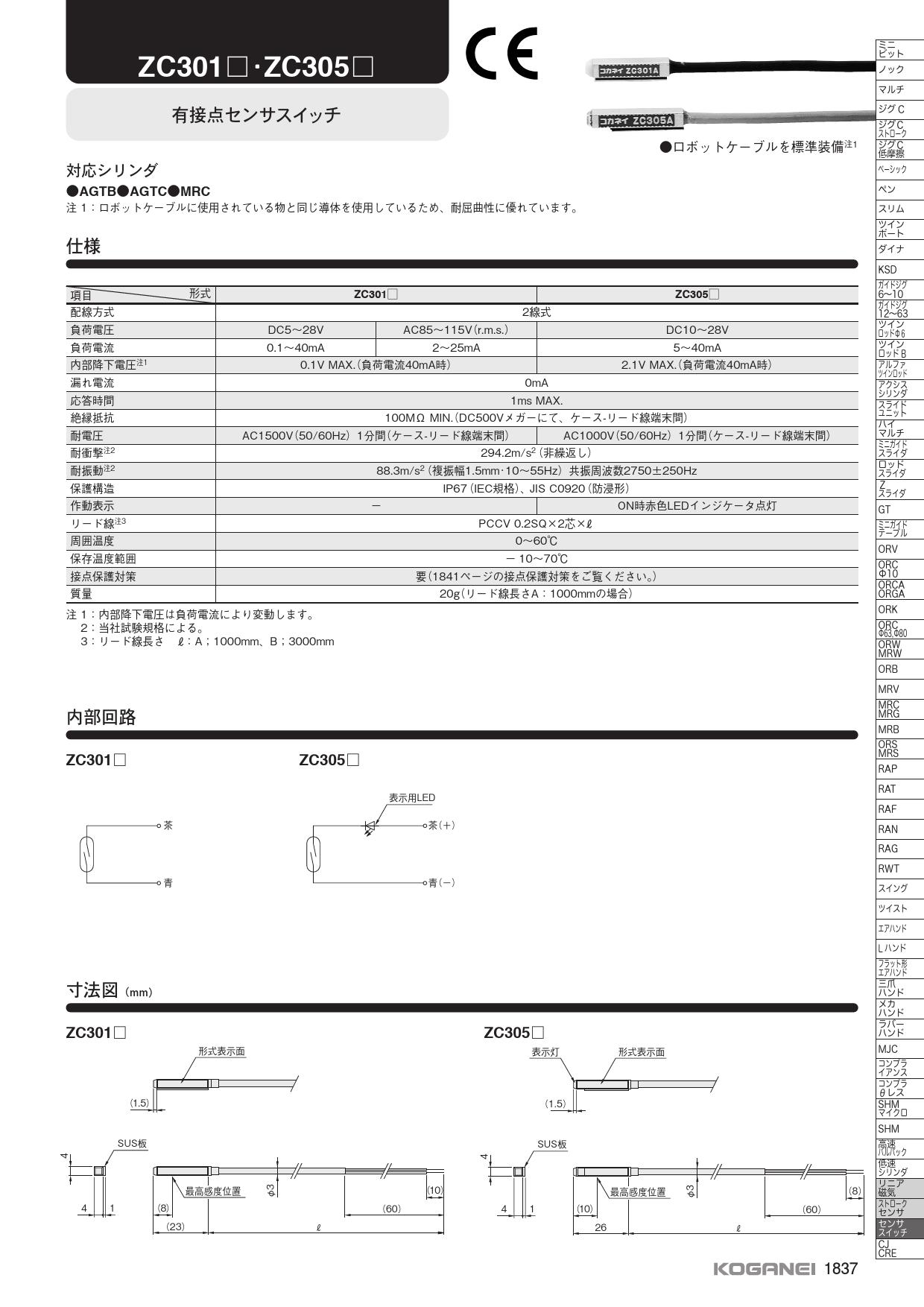 センサスイッチ,ZC301,ZC305,有接点,オートスイッチ